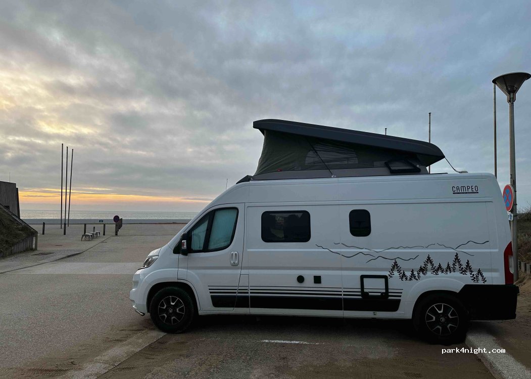 On y a passé la nuit par faute de pouvoir trouver une place dans un camping en période estivale. L'endroit est sympa mais bruyant par les jeunes qui restent tard à la plage et le matin réveil 7h30, les hommes d'entretien font leur travail pour nettoyer le parking