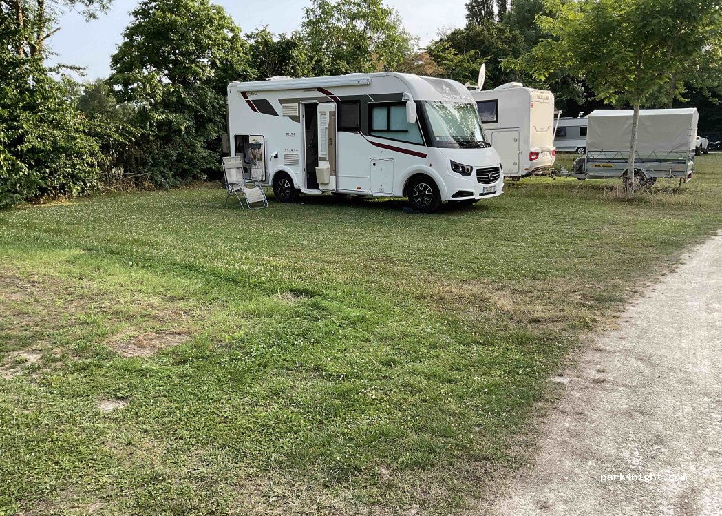 Schöner Campingplatz mit teilweise großen Plätzen; Duschen sauber und kostenlos; 2 Personen und Wohnmobil mit Strom kostet 15,00€, Vidange vorhanden mit kostenlosem Wasser! Sehr ruhig, Bäcker, Supermarkt und Wohnmobillhändler mit Shop mit dem Fahrrad in wenigen Minuten zu erreichen. Danke an die Gemeinde !!!