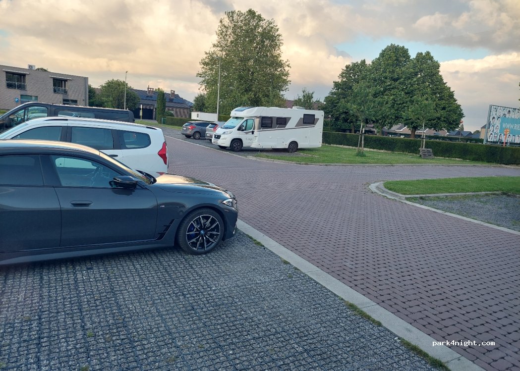 Parking du WZC et du cimetière de Riemst. Aldi à 500m, pizzeria à 1km, boulangerie à 1,3km