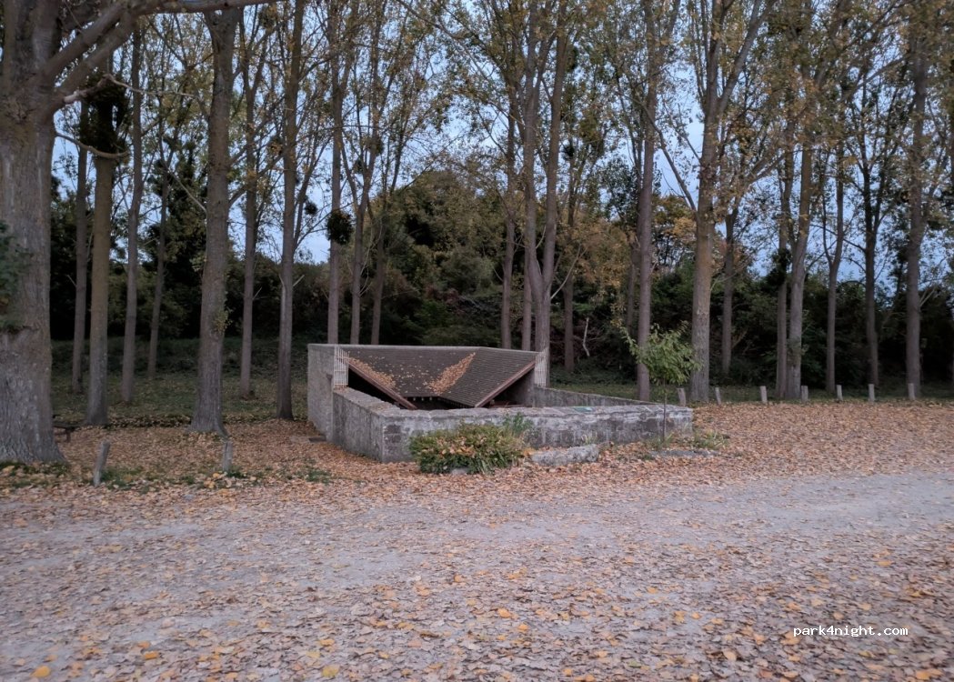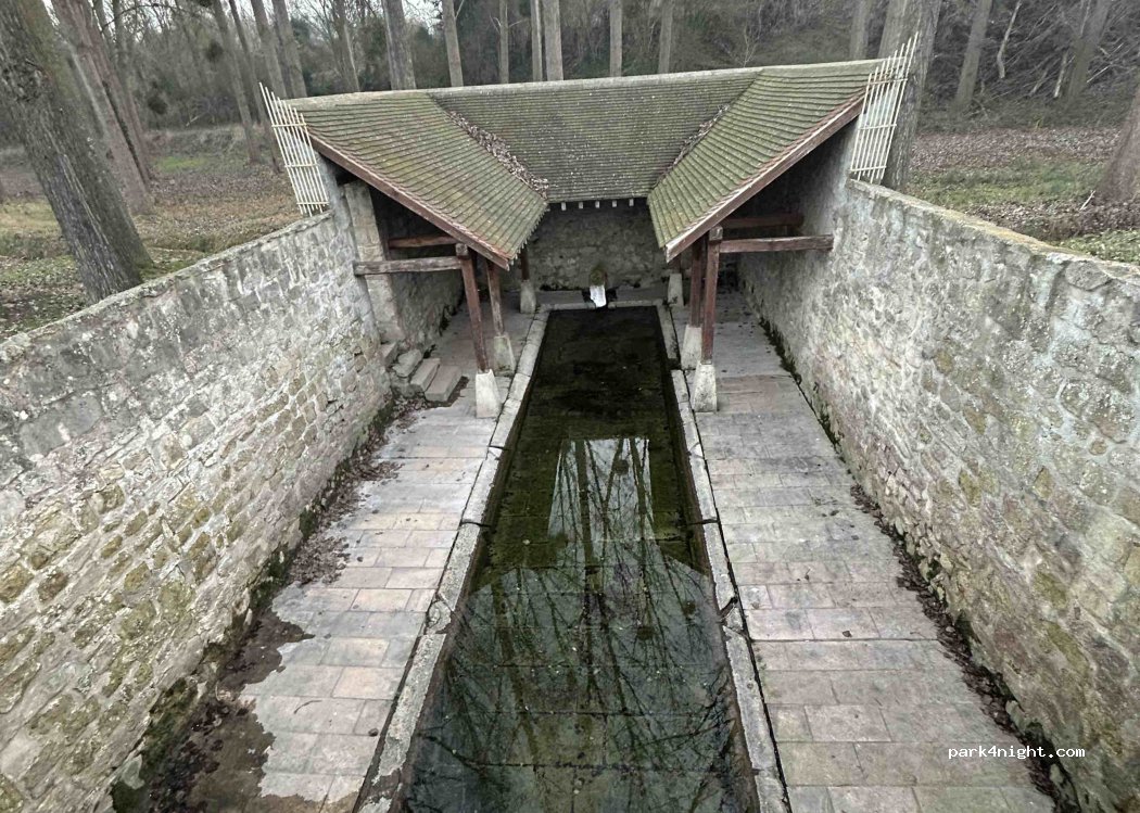 Lugar extraordinario para pernoctar si lo dejas todo tan limpio como estaba. Viajamos con autocaravana de 7m y cabíamos perfectamente. Lo escogimos para estar cerca del parque de Asterix porque en el parking no se puede pernoctar. No había nadie más. Por la noche no se oye nada de nada. No hay ninguna luz. Unas cámaras filman hacia el lavadero que le da un toque muy romántico al lugar.