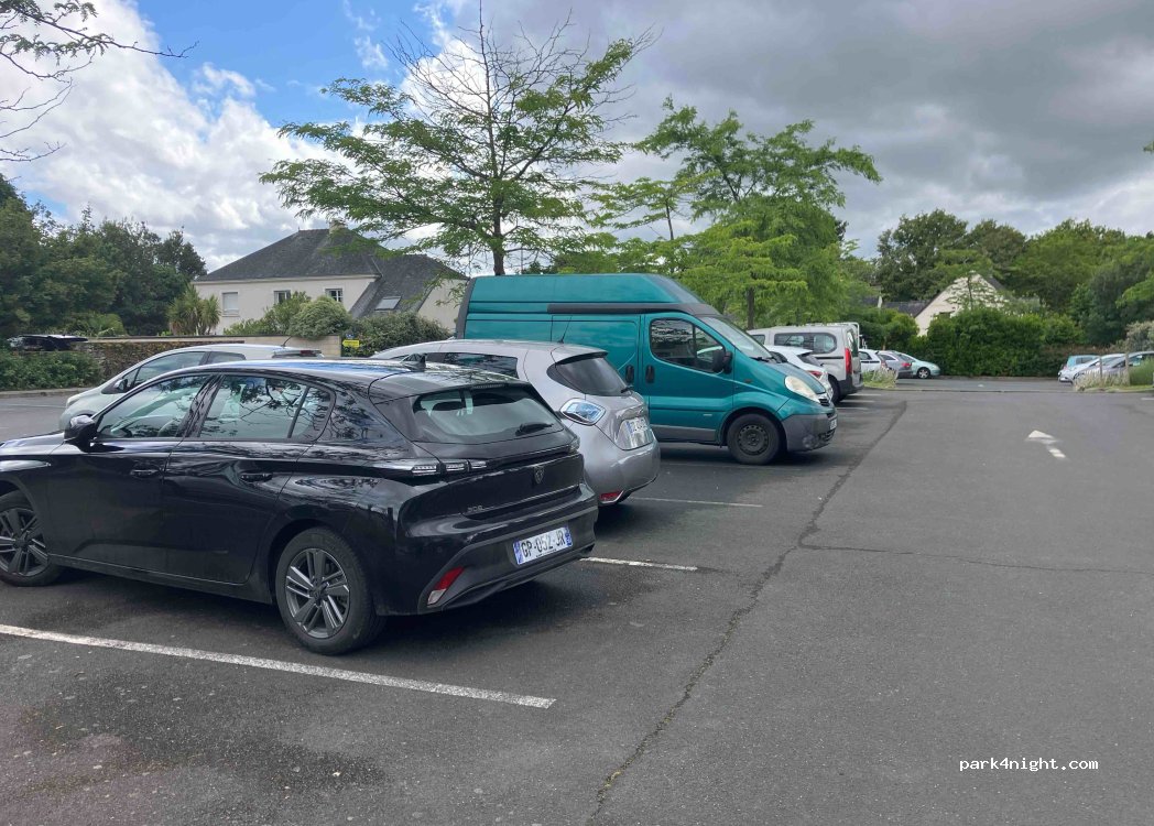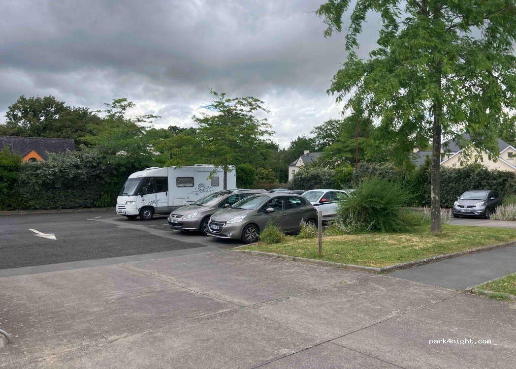 Petit parking en partie en pente, gratuit et sans aucun aménagement. Idéal pour les petits véhicules, les plus gros doivent occuper deux places de stationnement. Nous avons passé une nuit tranquille ici.