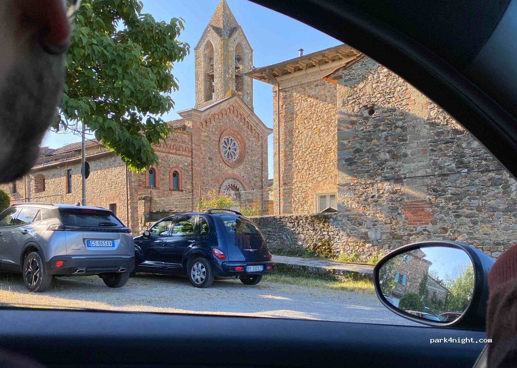 Small but quiet car park in the town of Cincelli. We spent one night in the car to leave early in the morning and had no problems. In nature, 3 minutes by car there is a bar and tobacconist, the Buriano Bridge and starting points for walks. There are no camper bans but we didn't see them!