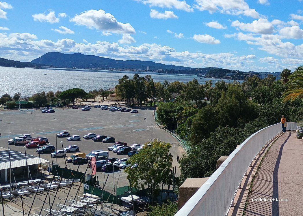 Free parking except from 22:00 to 6:00. beautiful view on the sea and direct access to the beaches of mourillon