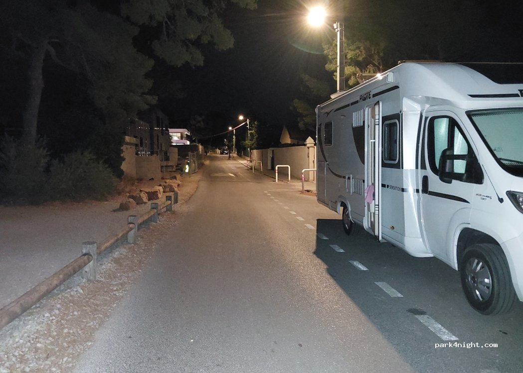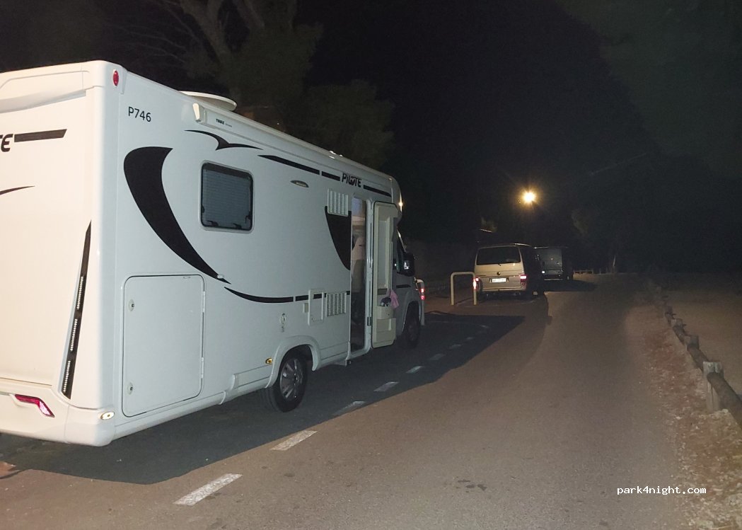 Aparcamiento al lado de la carretera. Pasan coches por la noche de vez en cuando. Gratuito a partir de las 19h. Muy cerca de la ruta de las Calanques. Frecuentado por otros campers/caravanas.