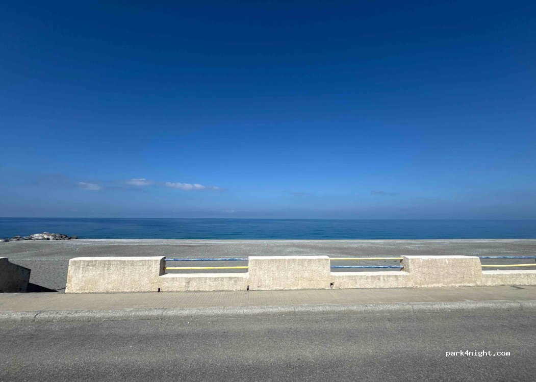 Ci siamo fermati per una sosta. Molto tranquillo, non è un punto di passaggio auto. Fronte mare. In generale silenzioso, ma a fianco della ferrovia, quindi forse rumoroso di prima mattina