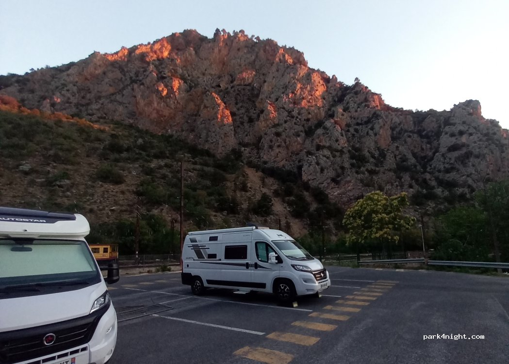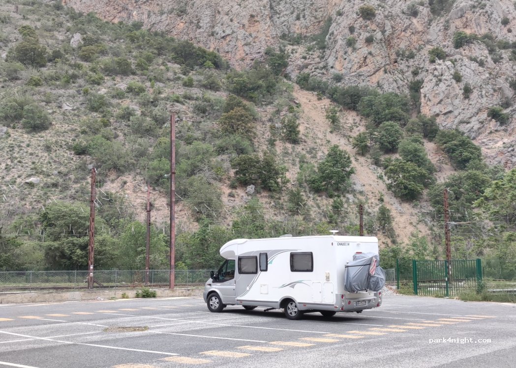 bien pour une nuit très calme la soir le bémol c'est qu'il n'y a pas d'ombre les points positifs et l'accès très rapide aux centres vraiment très beau et l'accès à la gare pour le train jaune nous sommes arrivés la veille à 19h30 nous sommes repartis le lendemain à 18h00 ont à fait 2 fois le centre une fois le soir puis le lendemain et nous avons pris le train nous avons payé 8€ de stationnement