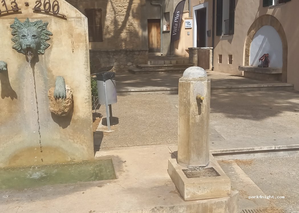 Una fuente de agua potable típica mallorquina: el agua sale con solo pulsar un botón. Posibilidad de aparcamiento en las inmediaciones.