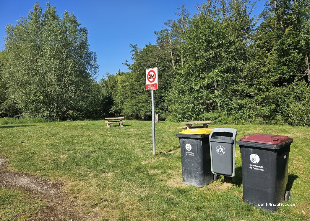 sport parfait, pas de barrière donc pas de restriction de taille. des poubelles a disposition, 2 tables de pique-nique un grand espace vert entretenu et bien sûr la belle rivière à nos pieds. nous avons dormi seule et pas de visiteurs la nuit ni au matin. attention aux moustiques même quand la soirée est fraîche.