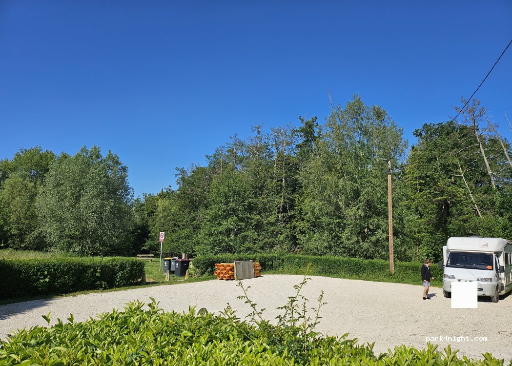 petit coin très tranquille pour une nuit étape. Toutes les aires sont pleines, que de tranquillité ici. Pas de passage, on n’entend pas la route, quelques promeneurs et pêcheurs, poubelles pour le tri à disposition, aire de pique-nique . 4 places c-car,c'est plat. Pas de barrière de limitation. Endroit propre . Laissez les lieux plus propres qu'à votre arrivée :) Merci pour ce lieu