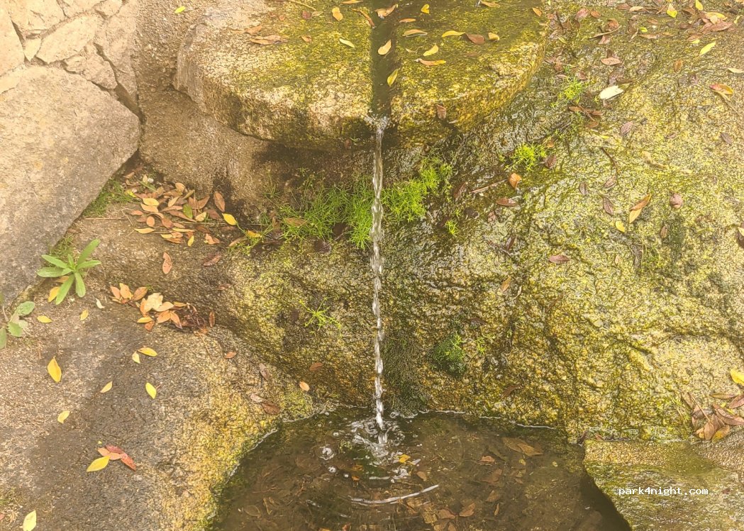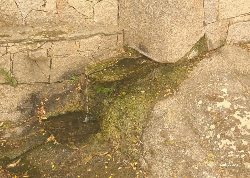 Fuente con un pequeño caudal de agua, pero suficiente para llenar botellas