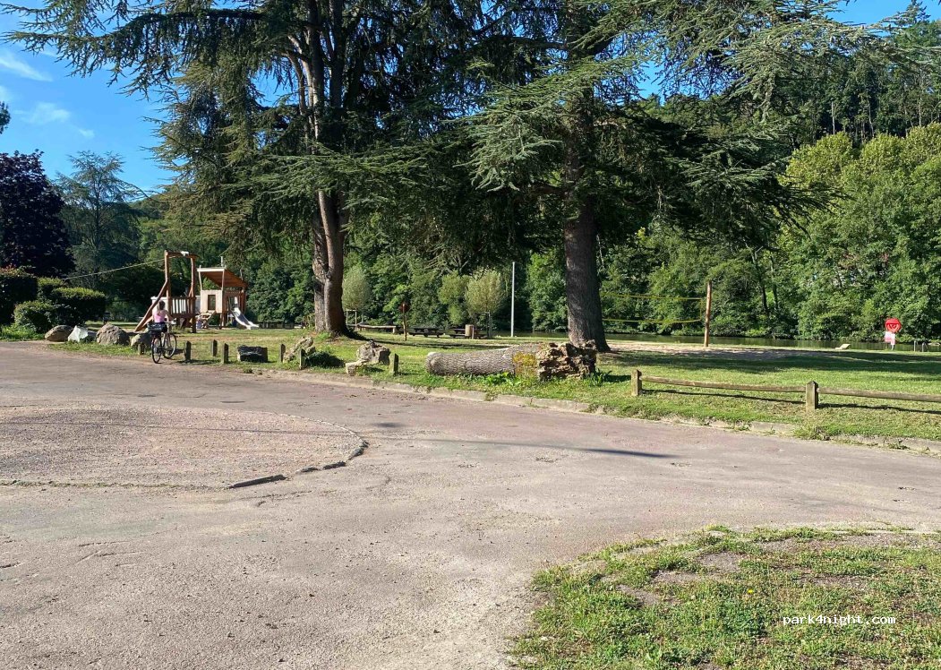 Super pour les enfants, baignade surveillée dans la rivière, tyrolienne, aire de jeux, city stade. Sanitaires de 10h à 19h l'été. Par contre l'été il y a des baigneurs et promeneurs jusqu'à la tombée de la nuit, si vous cherchez l'isolement passez votre chemin. A noter que le mardi soir la guinguette est fermée, il y a sûrement du monde jusque plus tard lorsqu'elle est ouverte.