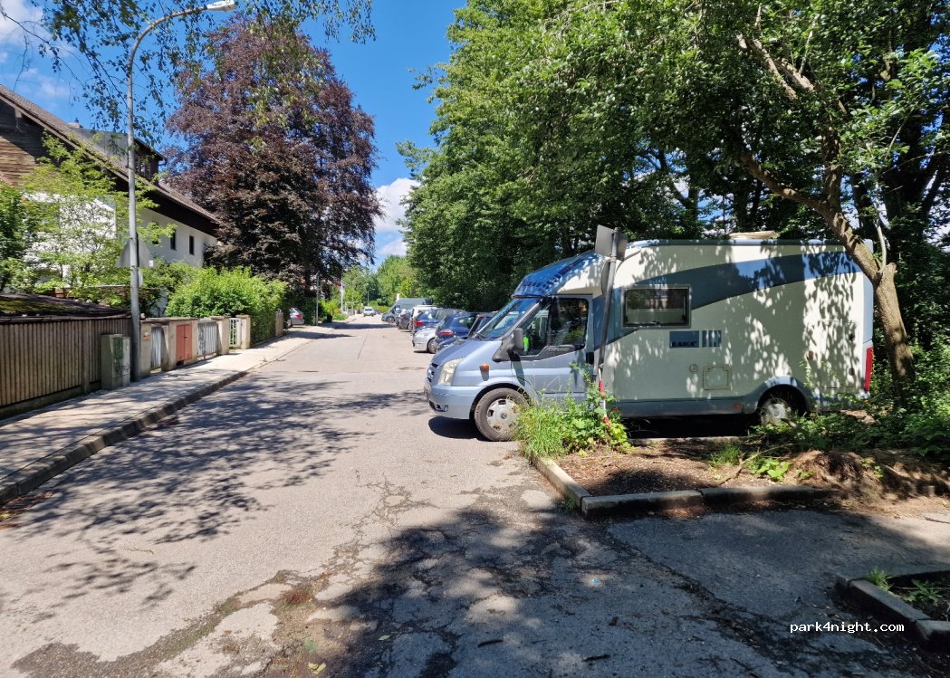 Direkt am Mangfall neben Sportanlagen. Nur für Fahrzeuge von MAXIMAL 6m geeignet, auch die stehen etwas in die Straße.