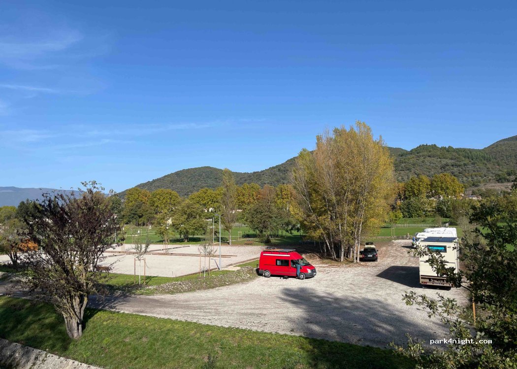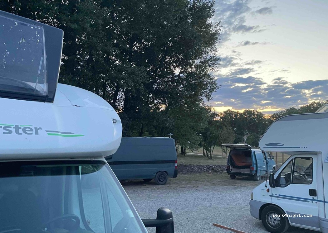 parfait pour passer la nuit. belle aire de jeux pour enfants, terrain de pétanque juste à côté. propre, facile d'accès, services gratuits. merci à la municipalité pour cet espace agréable !