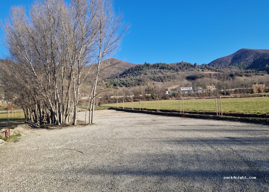 Très calme, entourée de verdure, propre, très belle aire en partie ombragée, services à 100m. Ça change du sinistre parking proposé à 7 minutes de là par Digne. Belle initiative de la municipalité. Nous allons du coup faire quelques courses au village.