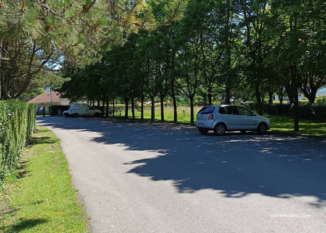 Difficile avec un van de plus de 6 mètres. Beaucoup de circulation la nuit sur la route à 30 mètres. Mais à proximité de la fête de la coquille (week-end de Paques) et du centre-ville. Présence de poubelles, pas de services