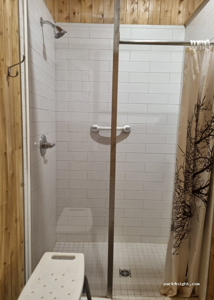Douches, toilettes, buanderie et espace de repos très propres. Place de stationnement offerte avec eau et endroit pour feu de camp. Très bel endroit, je recommande!! C’est gratuit, mais contributions volontaires encouragées:)