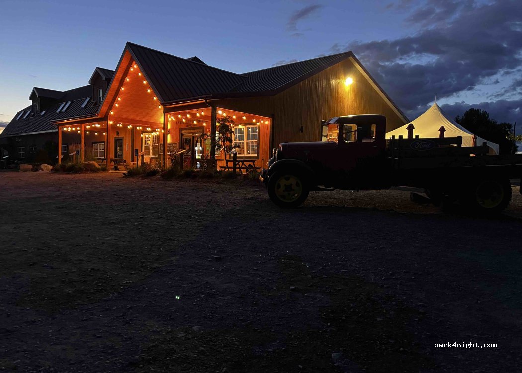 arrêt pour la nuit a la ferme,des gens adorables Grand terrain pour RV sans fournitures,mais un bâtiment avec toilettes et douches gratuites possibilité de manger et p'tit dej local.grande boutique de produits locaux pour faire son ravitaillement.que du bonheur.merci.