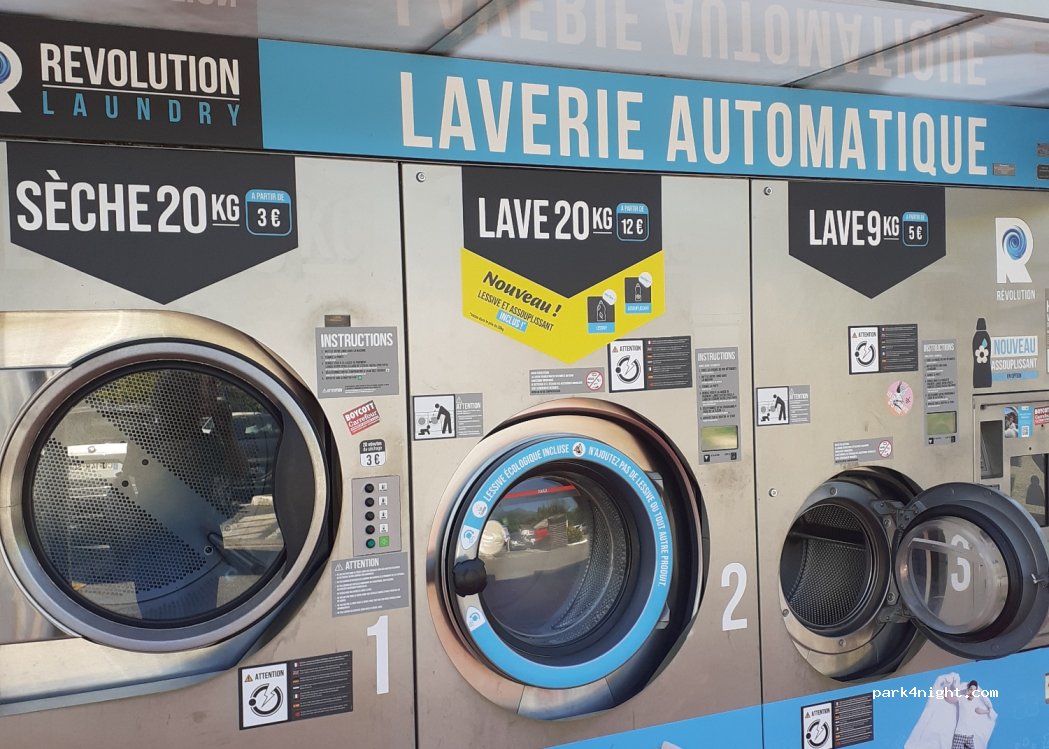 Washing 8kg/5€, 18kg/12€, drying 3€/20min