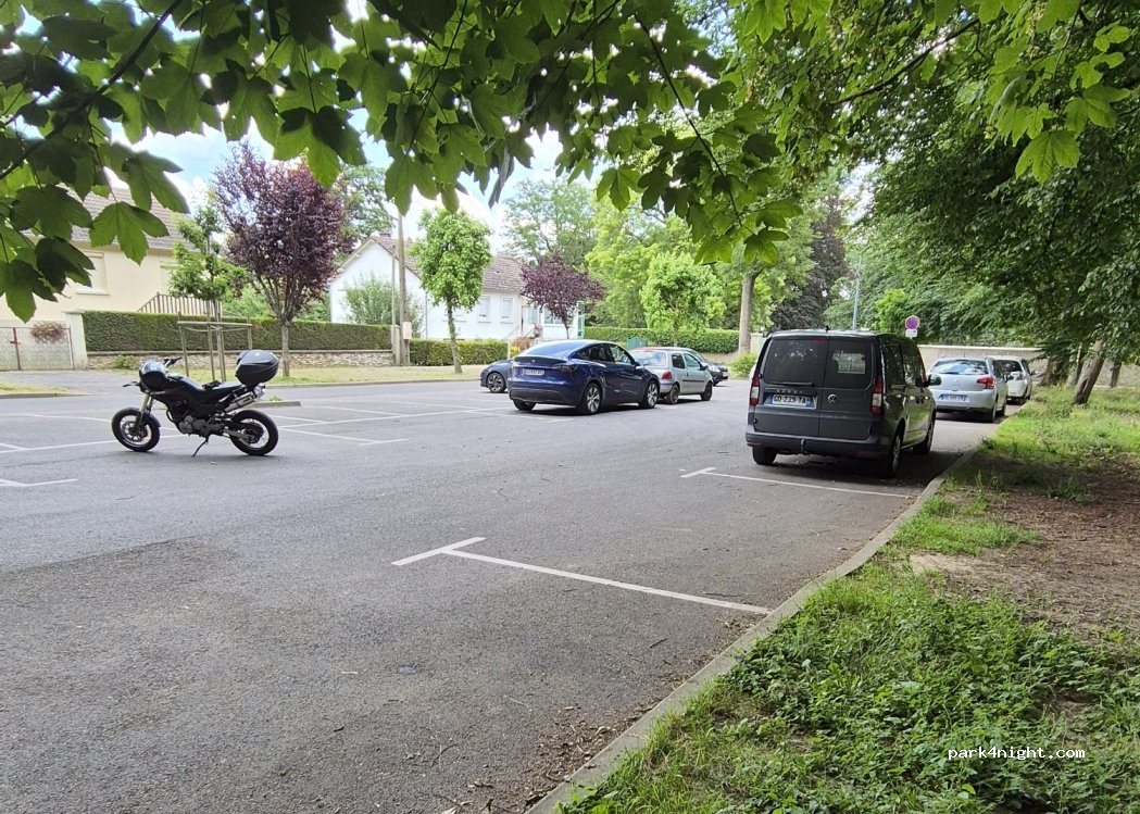 Schattiger Parkplatz mit Spielplatz daneben Pétanque-Platz in L’ombre