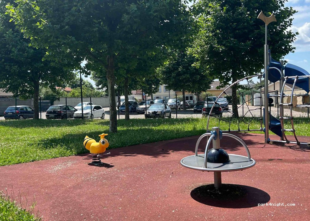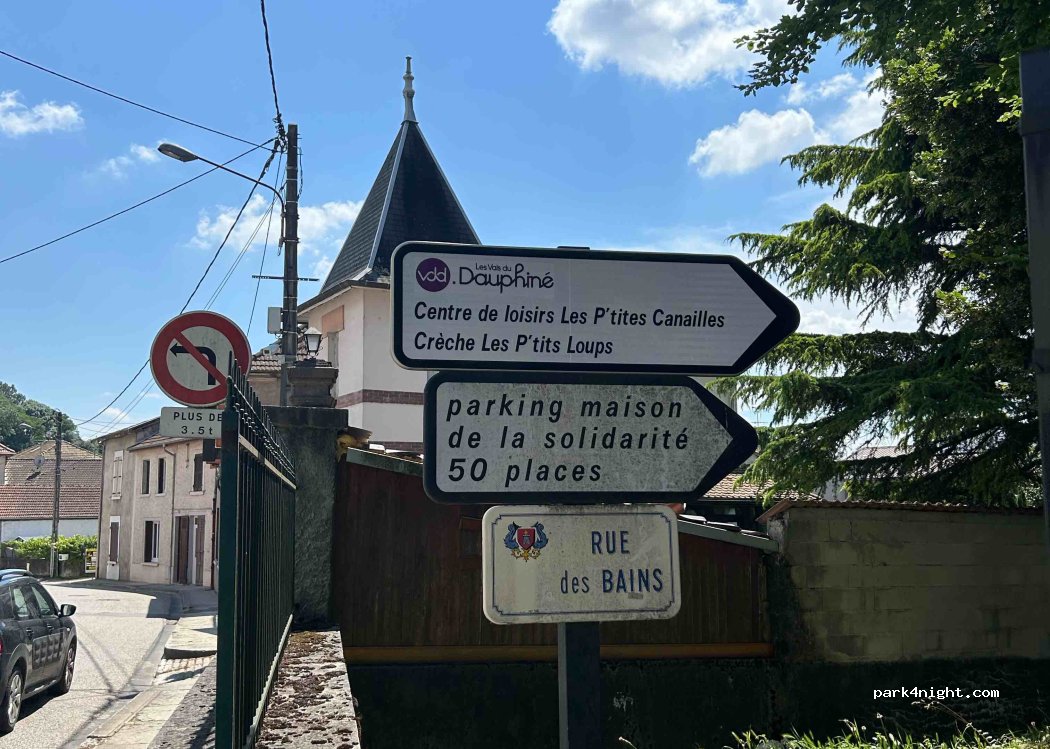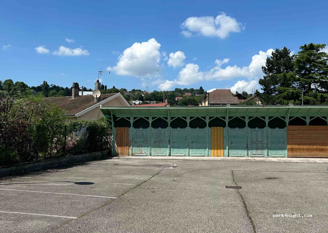 Parking au calme de 50 places, très proche du centre ville à l'ombre c'était l'emplacement de l'ancienne piscine (photo des porte des cabines pour se changer)