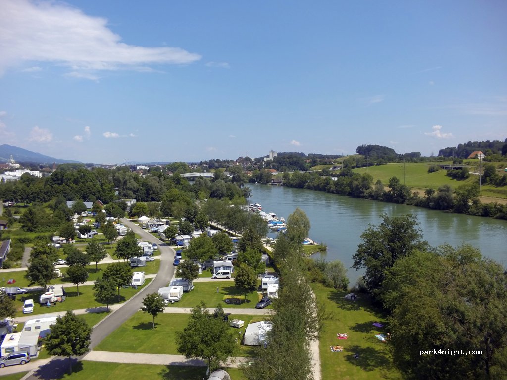 Le camping est très bien: emplacement bien ombragé, bon accueil, bon sanitaires, restaurant, pains et croissants le matin et accès direct à l’Aare avec une rampe pour descendre son bateau. Accès gratuit à la piscine qui se trouve à côté et qui est formidable pour les familles. Baignade dans l’Aare. Calme et place de jeu pour enfant. Rabais avec carte du TCS. Wifi. Oui c’est cher: environ 60 fr par nuit pour 2 adultes et 1 enfant mais ce sont malheureusement les tarifs suisse. Mieux de réserver en été car très prisé.