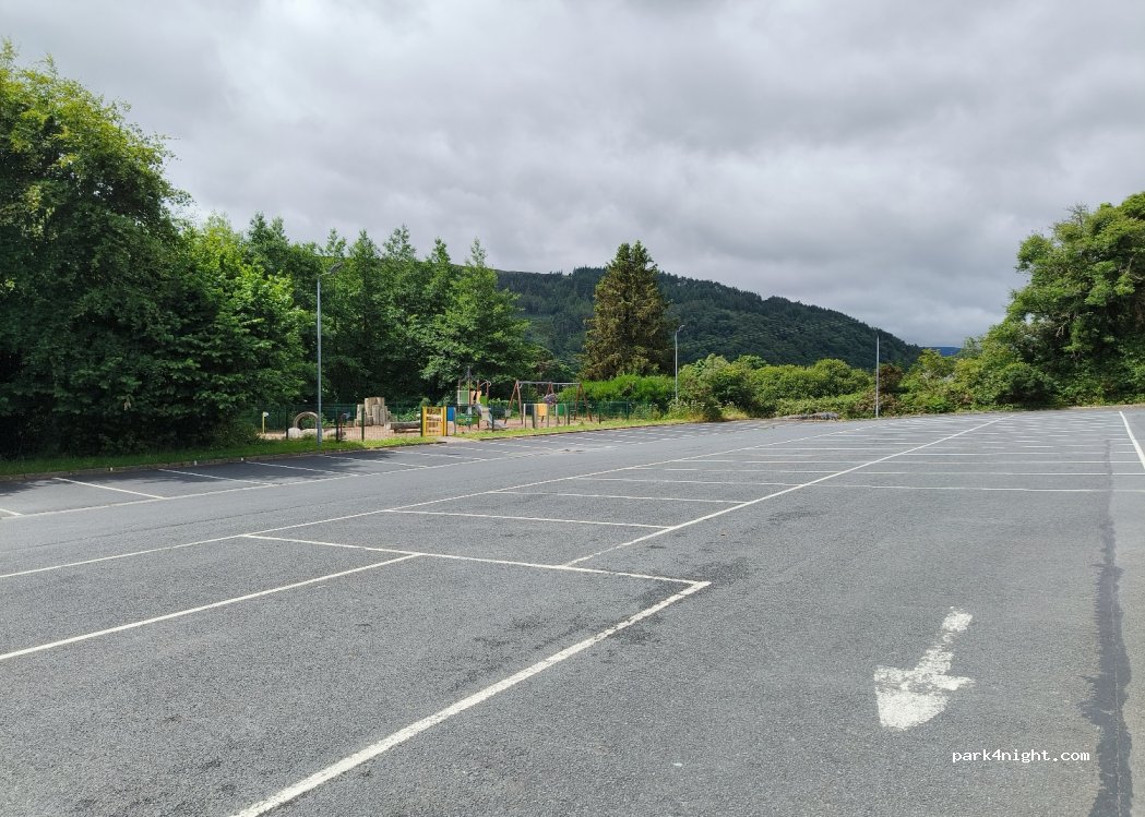 Spent two very peaceful nights here. Mostly sloping but when quiet you’re able to park using several bays near to the playground.