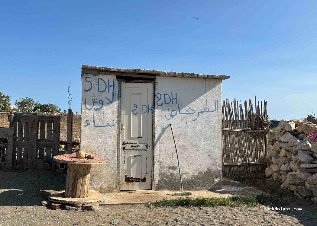 Endroit sympathique avec la plage a proximité. Toilettes turc avec possibilité de prendre une douche en mode hammam avec un petit sceau. Autonomie en eau et électricité nécessaire. Eau fournie provient du puit et ne peut servir que pour la vaisselle. endroit calme et reposant. embouchure oued peche possible. Pêcheurs avec leurs barques sur la plage sympathiques.