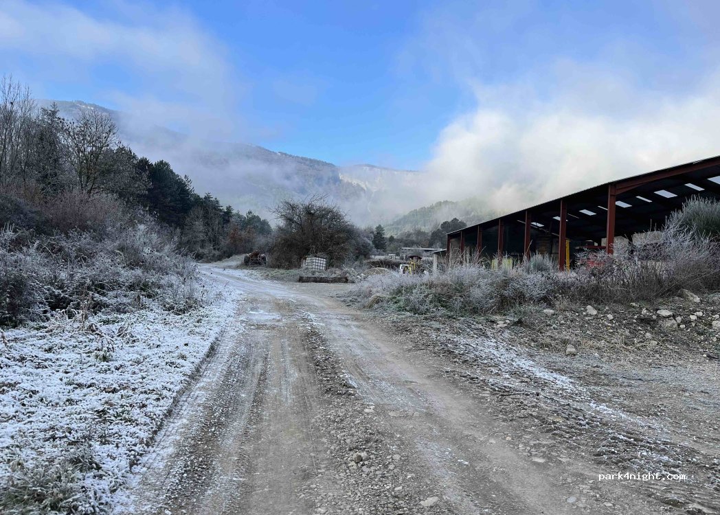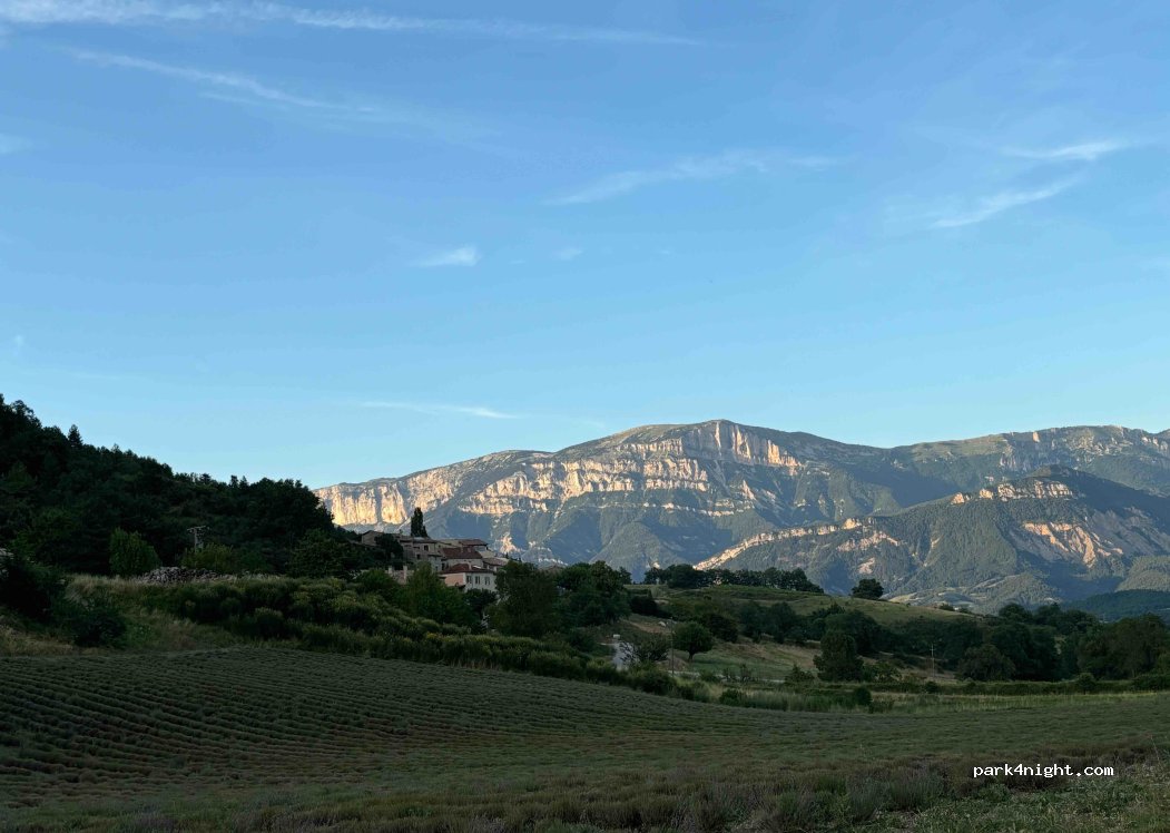 Nous avons passé une très bonne nuit sur l'emplacement en gravier aménagé près du ruisseau. l'accueil du propriétaire a été très chaleureux. nous en avons profité pour lui acheter noix, huile de noix, savons et essence de lavande. Un grand merci à lui. Nous repasserons certainement lorsque les lavandes seront en fleur