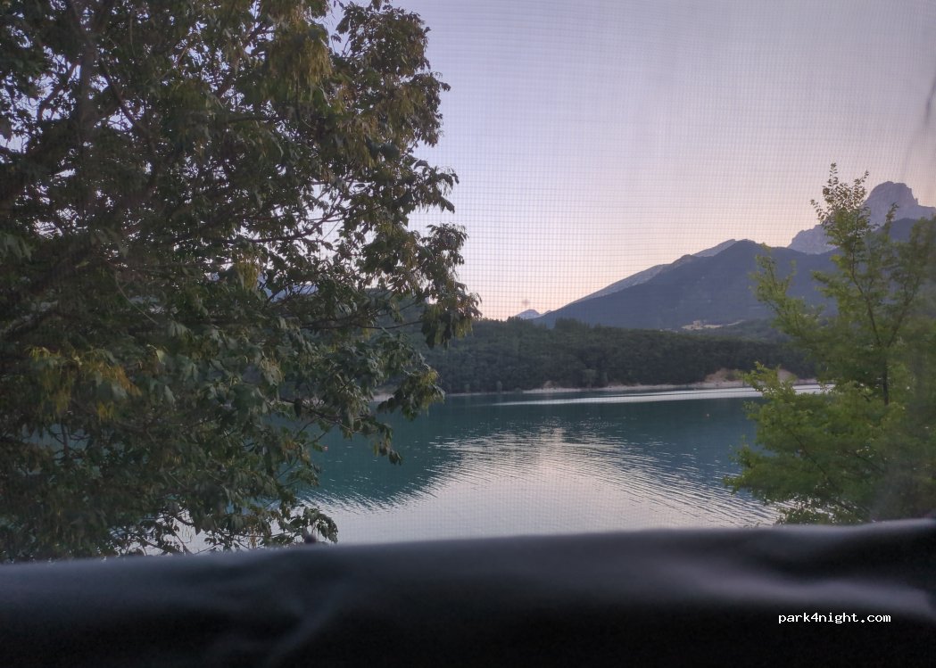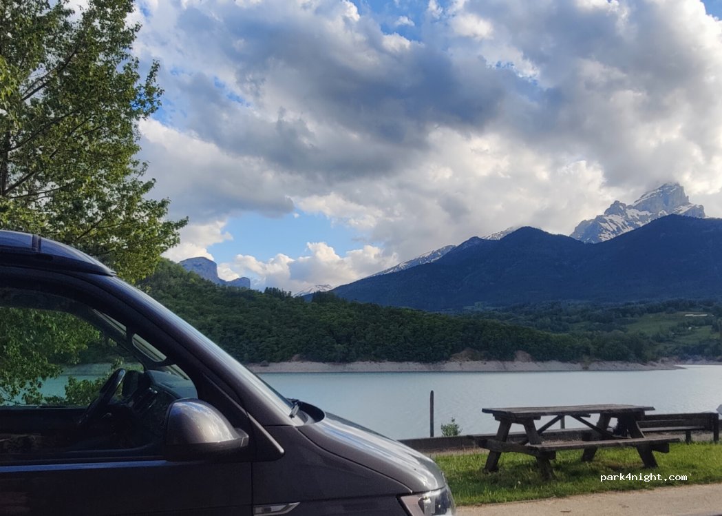 Free parking, beautiful spot near the water. Very quiet off-season, accessible to 12-ton vehicles, narrow road. Access is best from Corps not Sautet, as there is a steep descent to the parking lot.