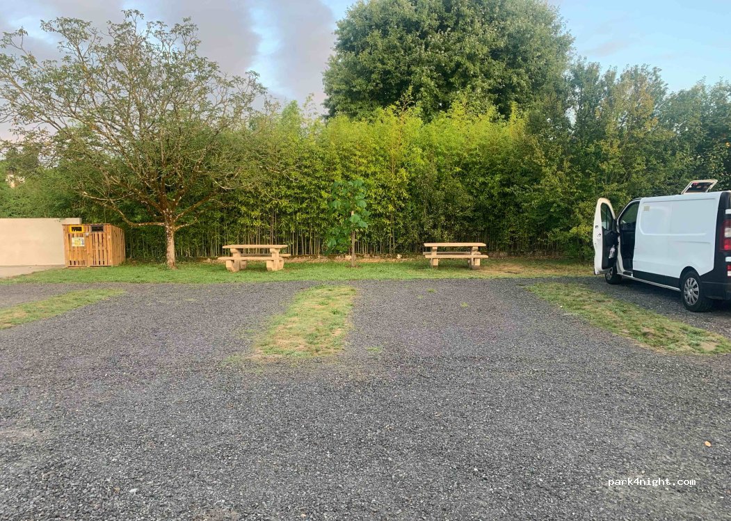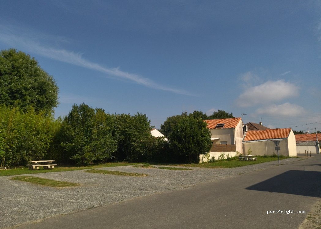 Lloc correcte on passar la nit. No hi ha serveis. Enganxat a la carretera( se senten els cotxes passar) i sota la ruta dels avions que van a l'aeroport de Nantes. Hi ha unes taules on poder menjar.