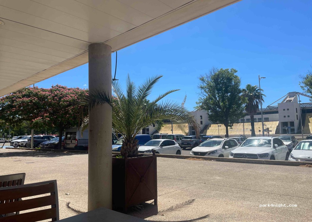 Large parking lot opposite the Annex restaurant. Bus nearby for Nîmes center. No height restrictions - free