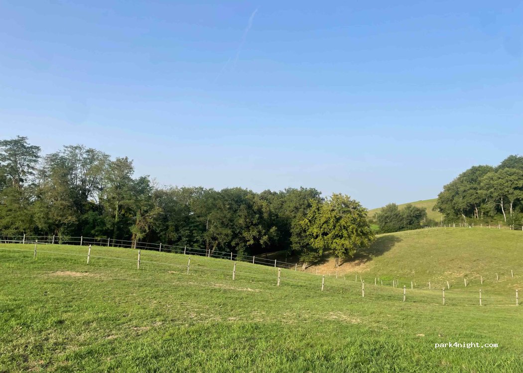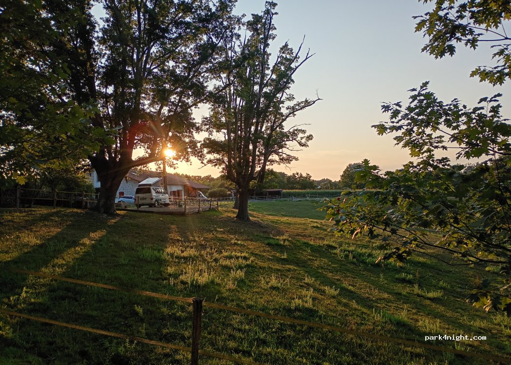 Accoglienza calorosa da parte di Laurant e dell sua famiglia e di due bellissimi cani nonostante il nostro arrivo in tarda serata. Ampia piazzola fornita di elettricità, BBQ e con possibilità rifornimento acqua. Vista bellissima sulle colline e campagne circostanti popolate da cavalli. Caldamente consigliato per una tranquilla sosta durante il vostro viaggio