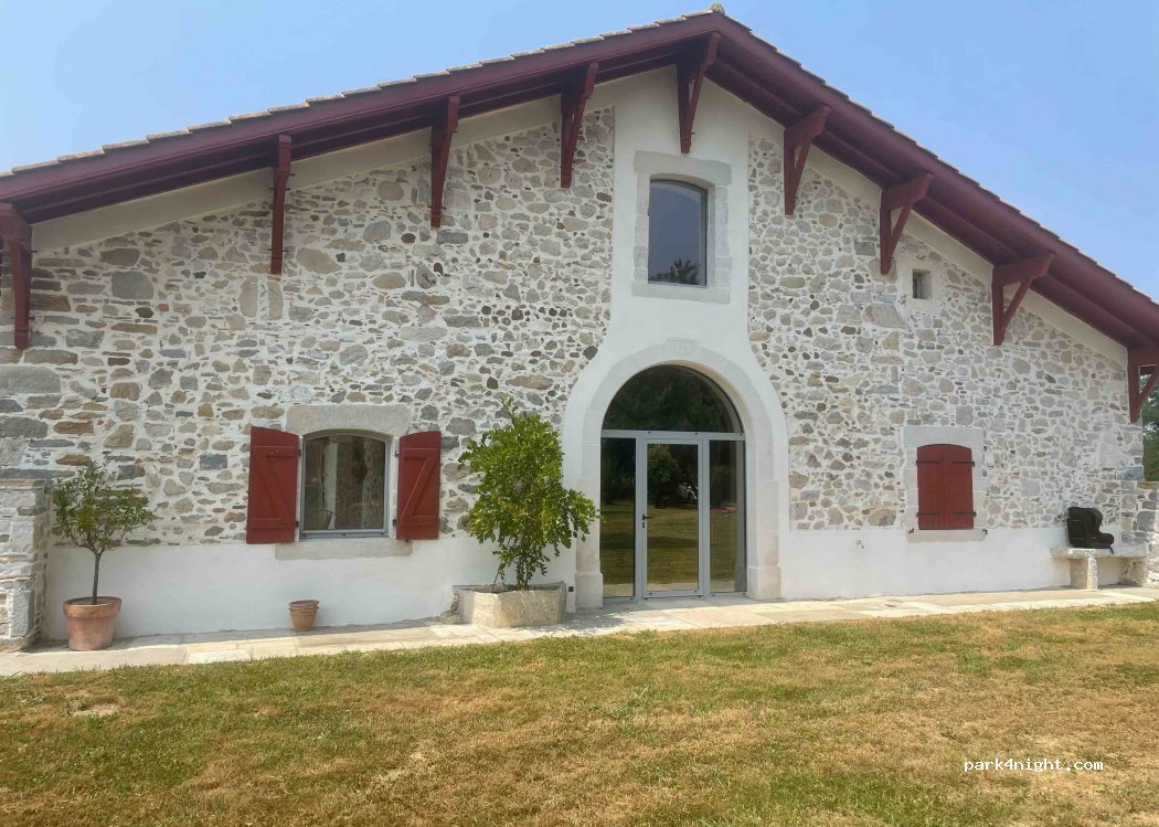 Motorhome or van area, 70m2 stabilized for a pitch with electrical connection. It is possible to fill up with water. Our location overlooks the horse meadow, near a tastefully renovated traditional Basque house. You can enjoy the calm of the place and the many outdoor activities nearby (guiche pop base, hikes, walks on the heights of bardos giving a view over the entire Basque country, etc.). We will be delighted to welcome you.
