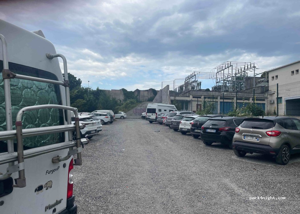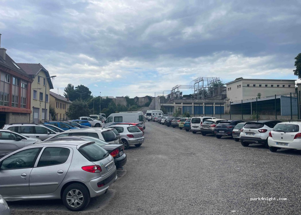 El aparcamiento de tierra al lado del hospital de la ciudad de Gap. Lugar tranquilo, gratuito y sin servicios. Unas 20 plazas