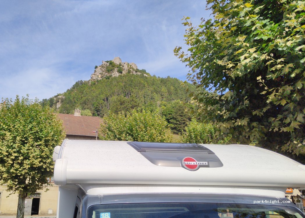 Merci à la commune pour l'électricité et l'eau mais coupée à cause de la secheresse. Mauvaise note pour le bar et son patron qui jacasse haut et fort avec groupe d'amis jusqu'à 2h du matin et partent en klaxonnant GRRR. Aussi les mob et moto sans pot d'echappement les gros camions tres passant pas faire la nuit. parking plus bas est plus calme. Ne faire que le temps de la visite du musée