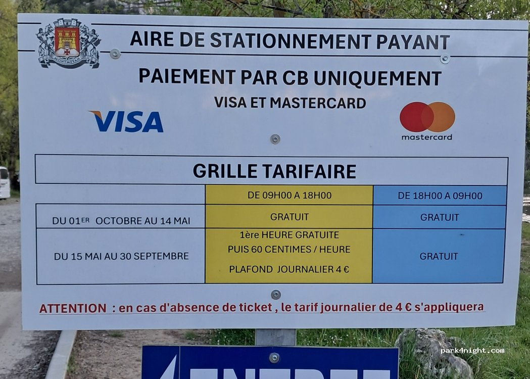 nous avons passer la nuit sur le parking un peu plus bas près du restaurant des berges du lac... restaurateur trés accueillant car nous avons demandé si on pouvez rester. nuit calme avec les grillons mais sol pas droit partout après le parking est grand donc on peut trouver un coin correct. départ du sentier garde canal du lac de quinson.