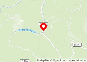 El Dimpfelbach fluye detrás del aparcamiento; El agua clara ofrece un agradable refrigerio a las personas y, por supuesto, también a los perros, y es de fácil acceso.