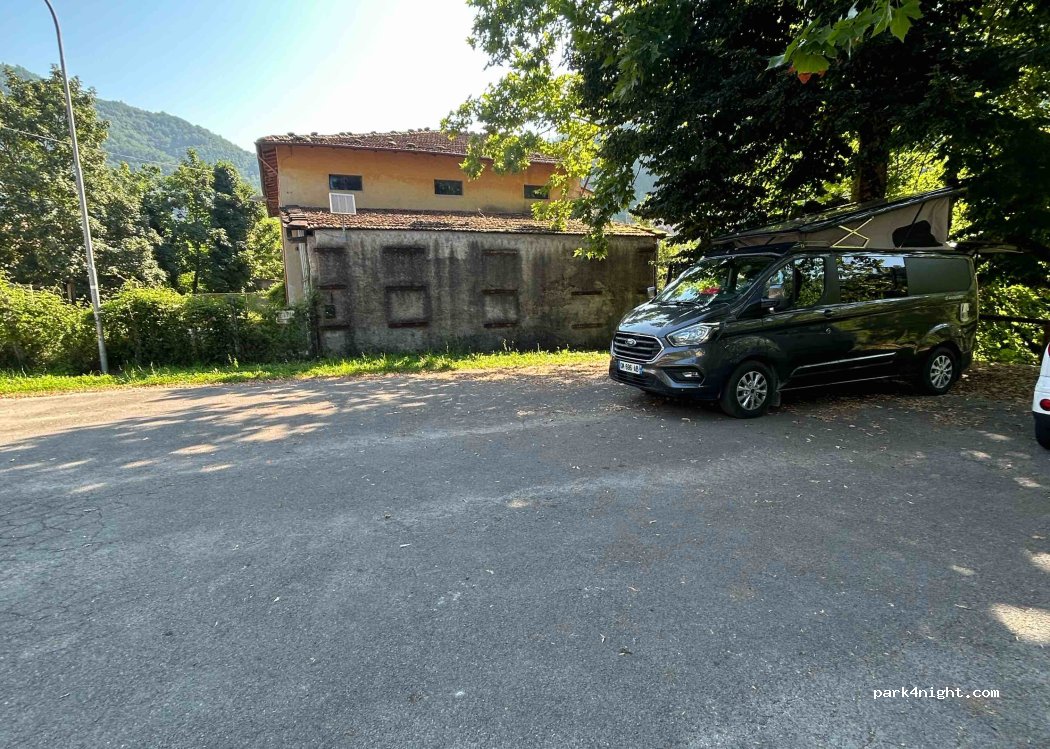 Parcheggio senza servizio ma relativamente tranquillo. Al mattino arrivano alcune macchine al parcheggio. Abbastanza silenzioso solo il rumore del fiume. Vicinanza al piccolo paese con ristorante e negozi