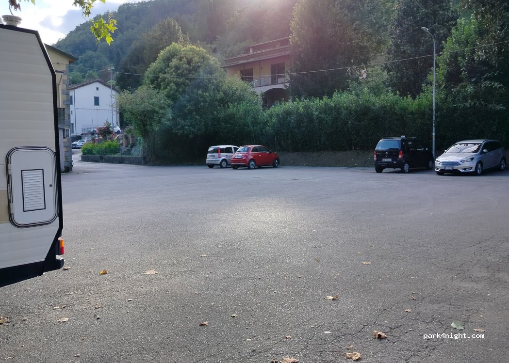 Parcheggio per i clienti della Conad. Tranquillo e silenzioso, siamo stati qui una notte. L’ unica cosa è che il fiume in piena fa un po’ impressione, è molto vicino alla strada…
