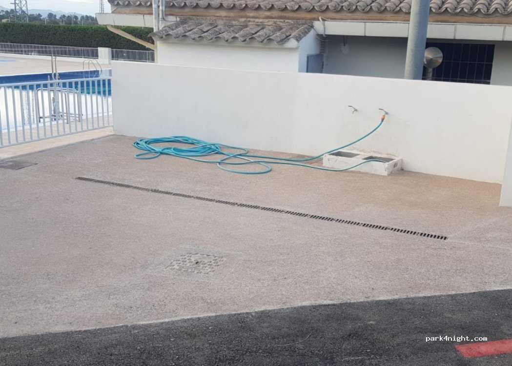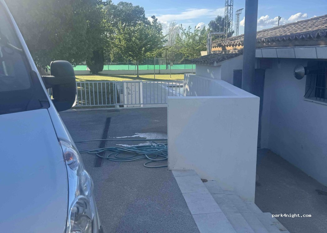 Perfecto para vaciar grises y negras y llenar el agua. Además al estar dentro del polideportivo tienes la opción de entrar a la piscina y hacer uso del WC y duchas. Les doy un 10. Más pueblos así.