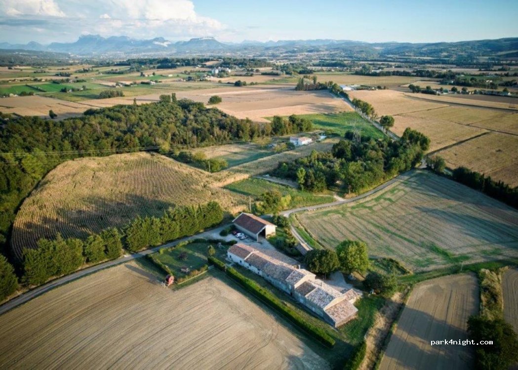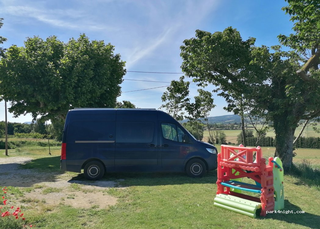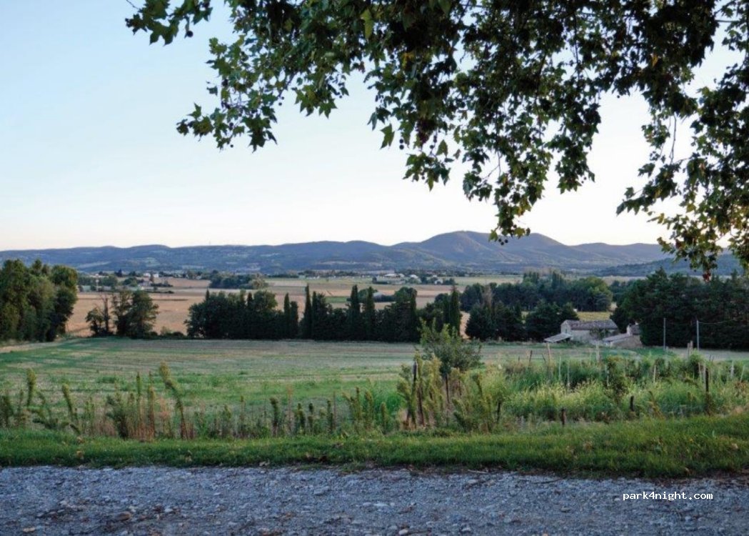 Bel endroit calme avec vue sympathique sur la vallée de la Drôme et de beaux arbres pour l’ombre.Sanitaires impeccables et neufs. Accueil au top!