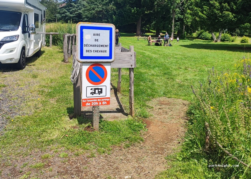 Panneau interdisant les nuitées de 20h à 8h.
