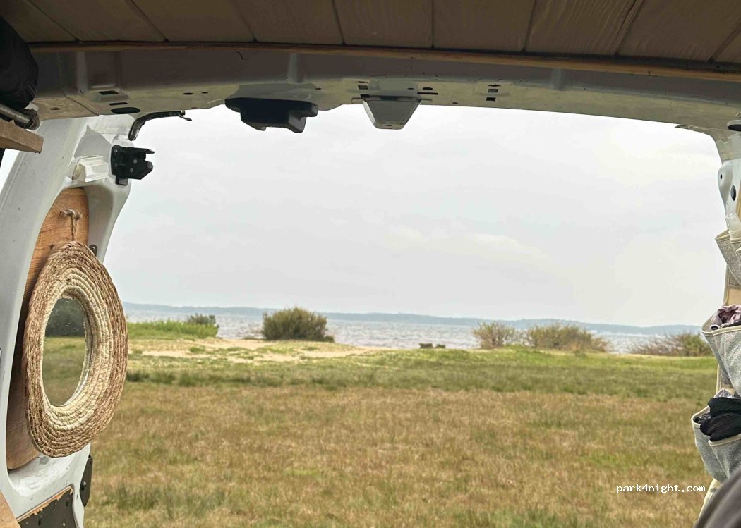 Grand, idéalement situé et très calme. Vue sur l’étang de Lacanau et à 2 pas du sable. Toilettes (propres) et point d’eau sur le parking. Accès à une guinguette et un restaurant à quelques centaines de mètres, au niveau du port. Pas de mauvaises surprises types verbalisation ou passage de la police.