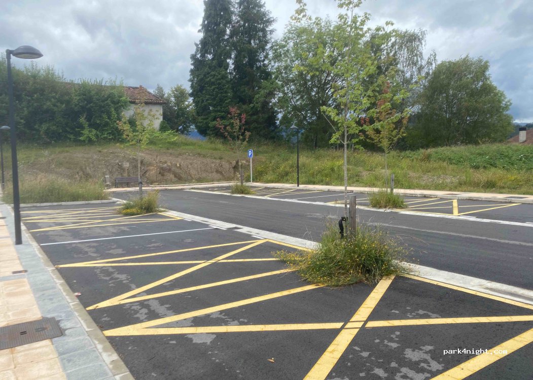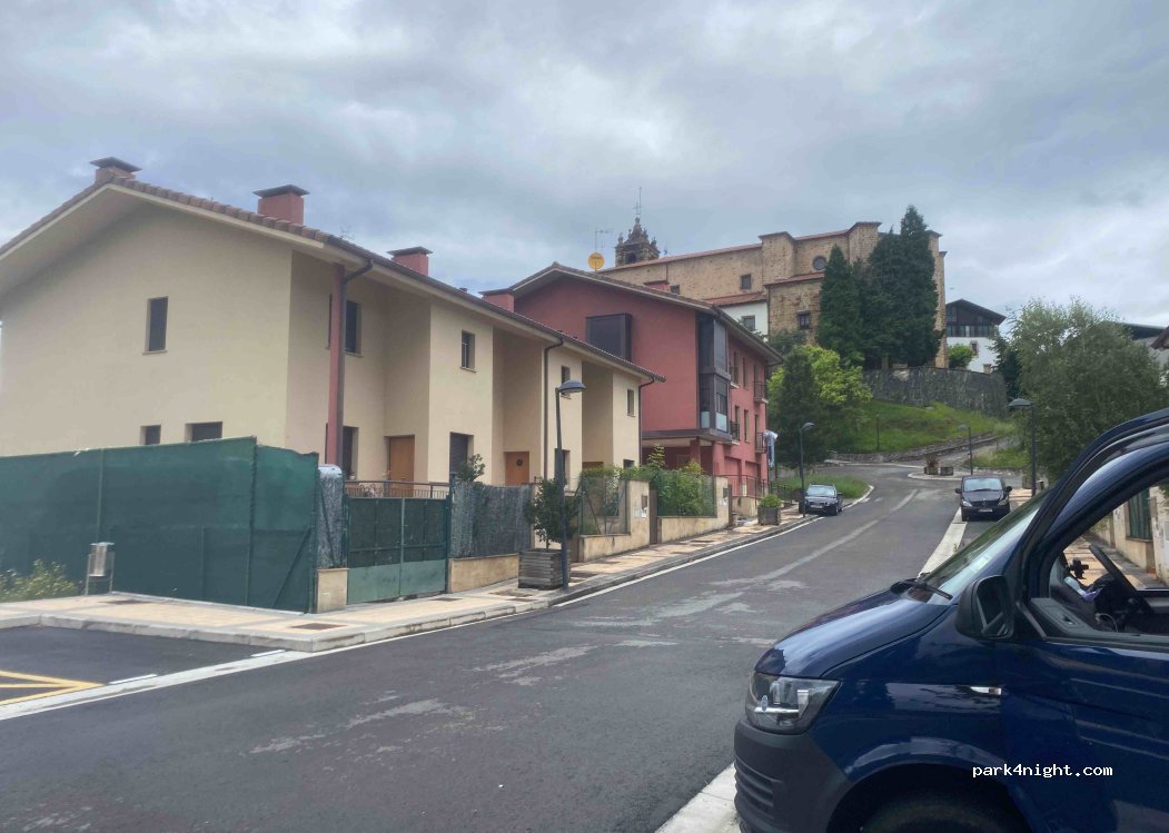 El pueblo se llama Gabiria. Esta en lo alto de la montaña, pueblo no muy grande pero muy bonito. Es un aparcamiento al final de una pequeña calle muerta, parece que lo habian hevho con intencion de area de autocaravanas o similar. Calma total, silencio, paz.... El relog de la iglesia no suena por la noche. Hay un bar/restaurante. Tiene buena pinta, solo tomamos cafe.