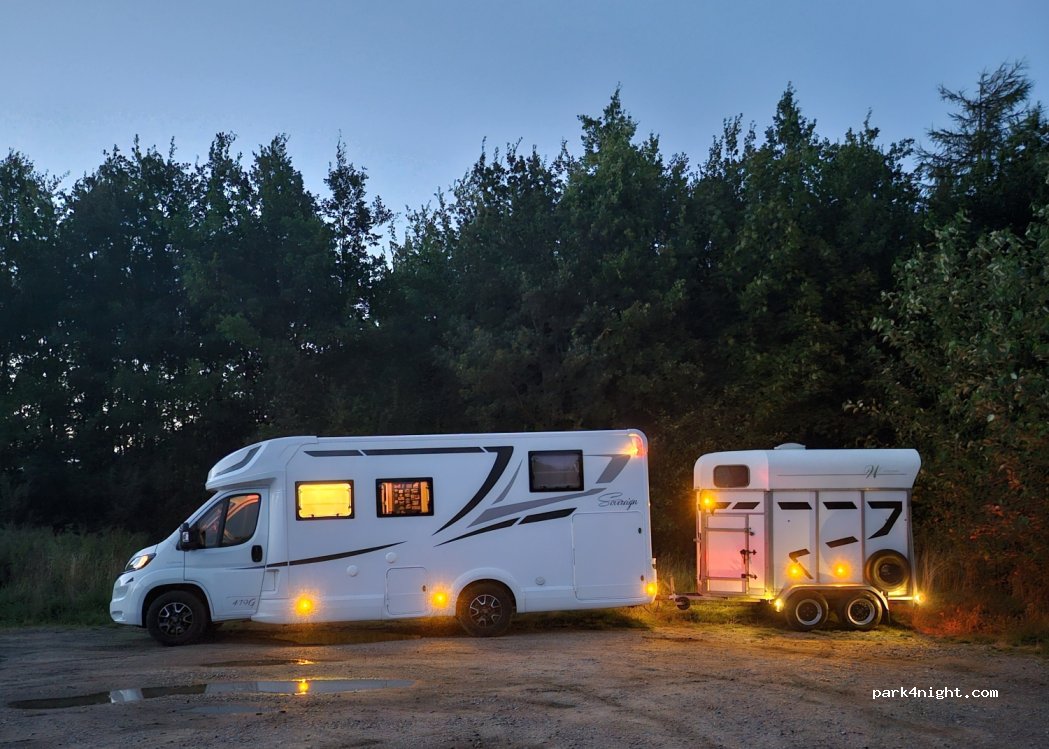 Official parking lot with no restrictions. You can hear the nearby motorway, but it is not loud. A car rarely drives past. Enough space for about 3 motorhomes.