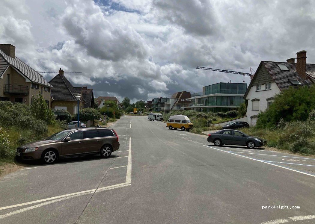 Parkeren bij het strand. Strand toegestaan voor honden aan de linkerkant.