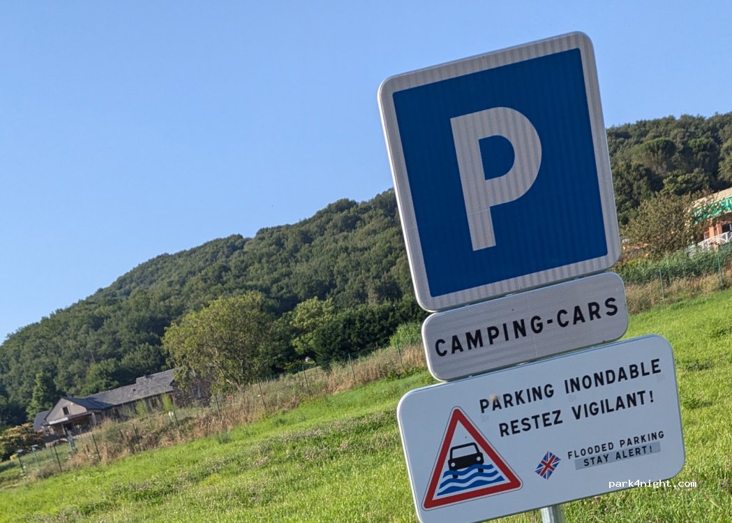 Aire gratuite dans un champ hébreux non ombragé. Aucun service. En zone inondable. Des "plages" à proximité et la ville à 10mn à pieds. Merci à la mairie d'avoir créé cette aire.