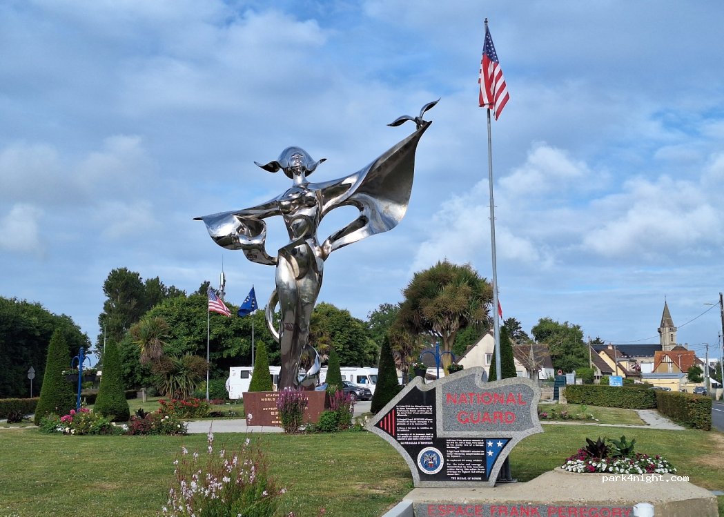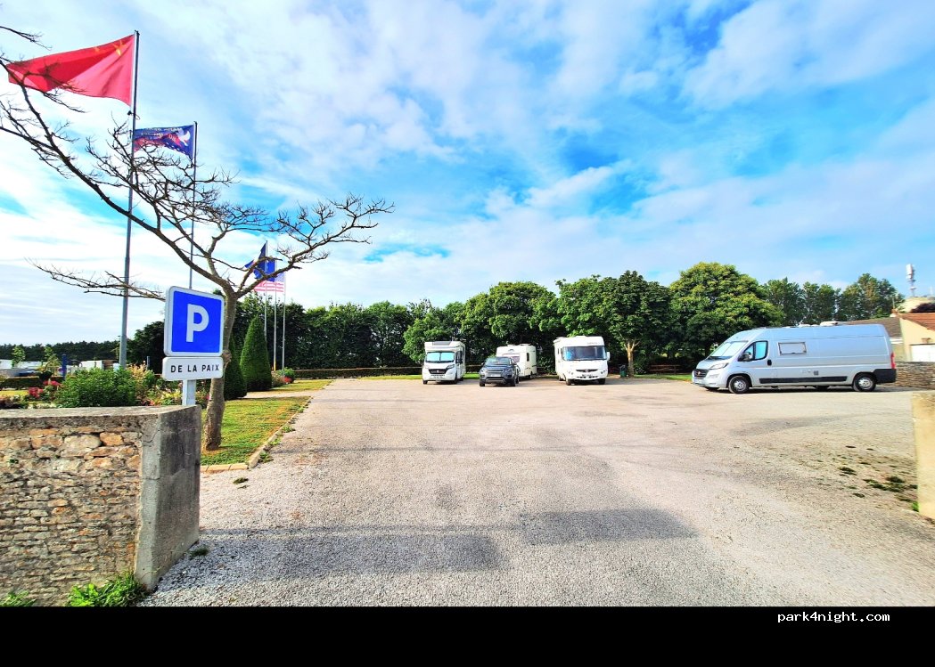 Parking La Paz, en población tranquila y respetuosa. Se encuentra bajo la estatua mundial de La Paz. Ruta a pie o bicicleta de las playas del desembarco de Normandia (Pointe du Hoc la mas proxima). Cuenta con zona de picnic y a 3 min a pie de las instalaciones deportivas del municipio.