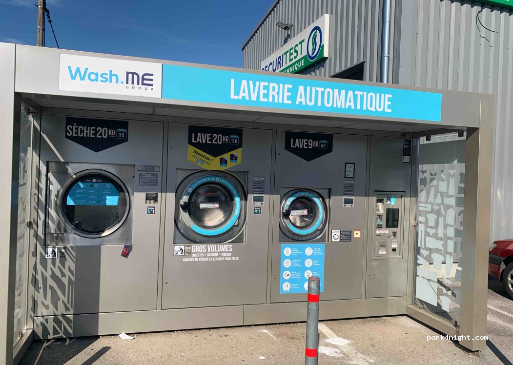 Laverie automatique à côté d’un super marché, pharmacie, boulangerie, point presse et station service. La Saline royale est à quatre cents mètres.