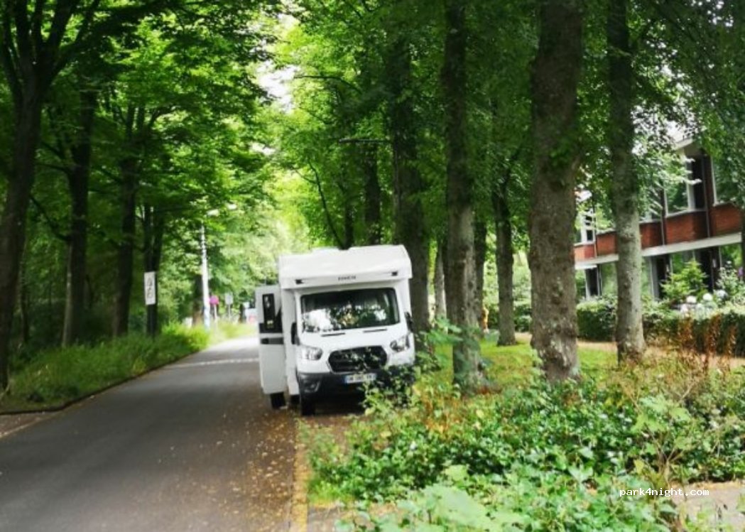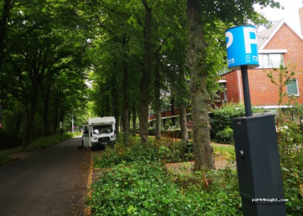 Parking along the street, close to a school. In the shade under the trees all day. Paid parking during the week but free on Saturdays and Sundays. Ideally placed for visiting Leiden or accessing the central station to reach The Hague, Haarlem or Amsterdam.